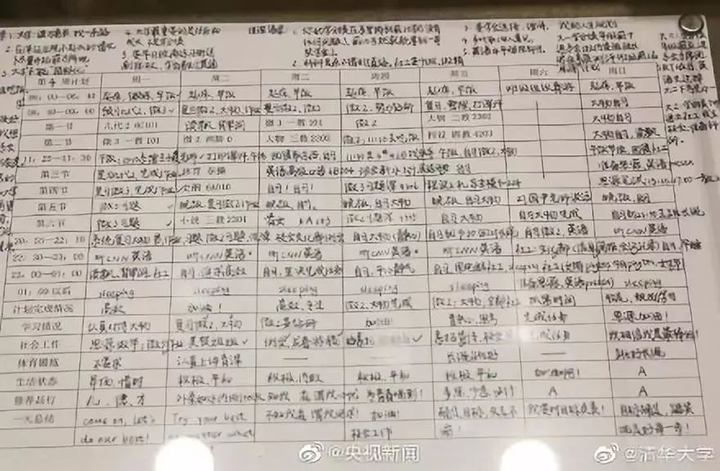 前几日,清华大学曝光了一些清华学生的计划表,瞬间冲上热搜。