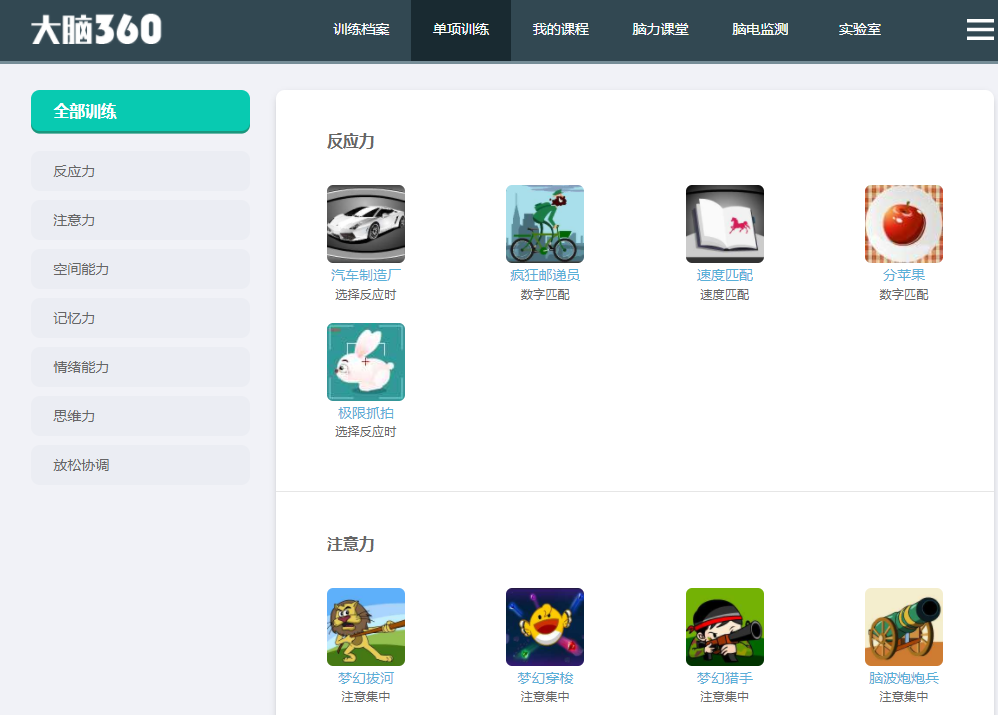 大脑360里面的认知能力训练项目旨在强化神经元连接
